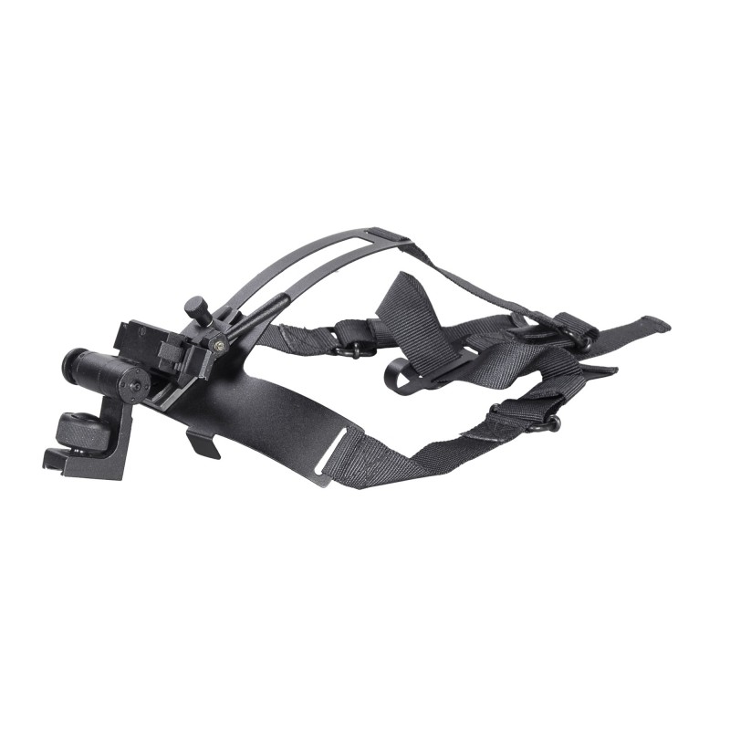 The Helmet mount fits securely onto helmet via a rugged strapping device and grooved hooks. With helmet mount, NVD can be positioned directly in front of user's eyes or flipped.