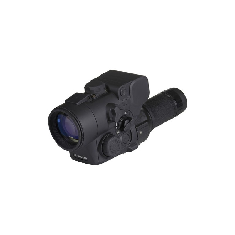 The DN55 Digital NVD Forward Attachment from Pulsar is a DFA75 digital night vision device with a 10x32 eyepiece. You can attach this NVD to your riflescope objective by removing the included eyepiece and using a select optional adapter. This NVD features a Sony ICX-255AL 0.33" CCD with a resolution of 500x582 pixels and provides resistance to bright light. In addition to using the built-in Micro OLED display, the video port and included cable allow you to use it with an external monitor or a recording device.