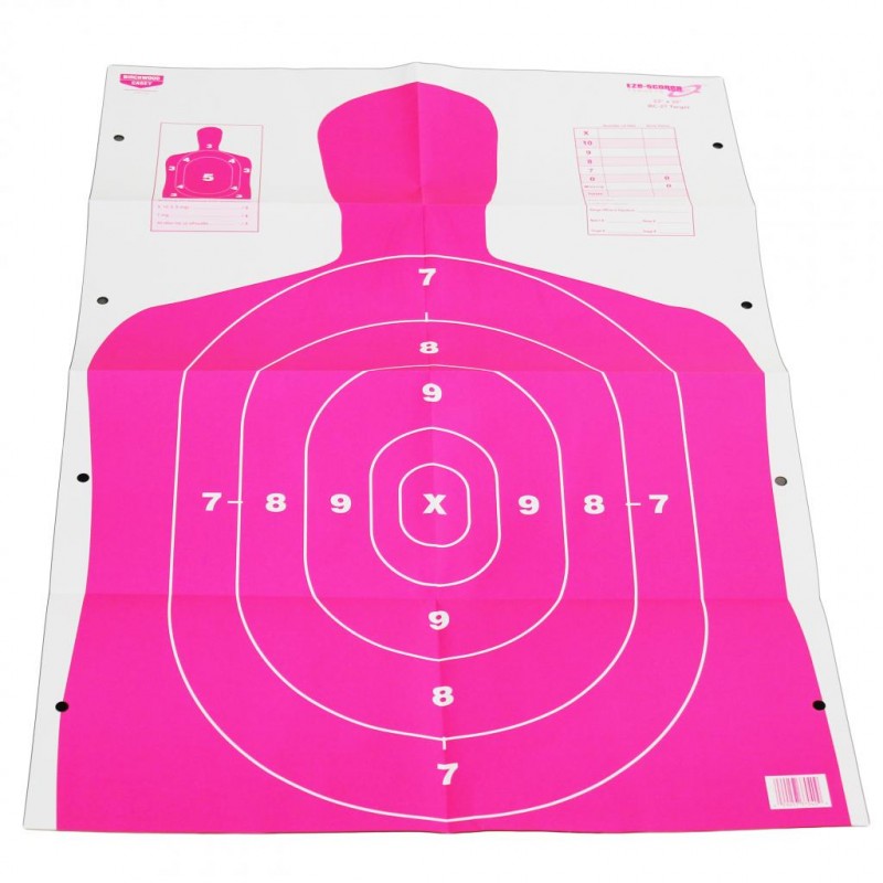 High-contrast pink print on bright white paper. Great for indoor and outdoor ranges. Practice like the pros with these top-selling silhouette targets.
