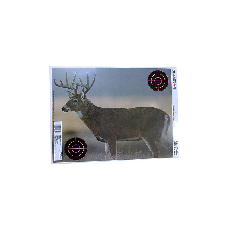 It can be deer season every time you head to the range with the Champion VisiColor Real Life Deer targets. Each target has a realistic profile of a whitetail deer. A successful shot shows a burst of color in each vital zone, giving you instant feedback. A visible sight-in bullseye on each target lets you zero in your rifle before you take aim at the deer.