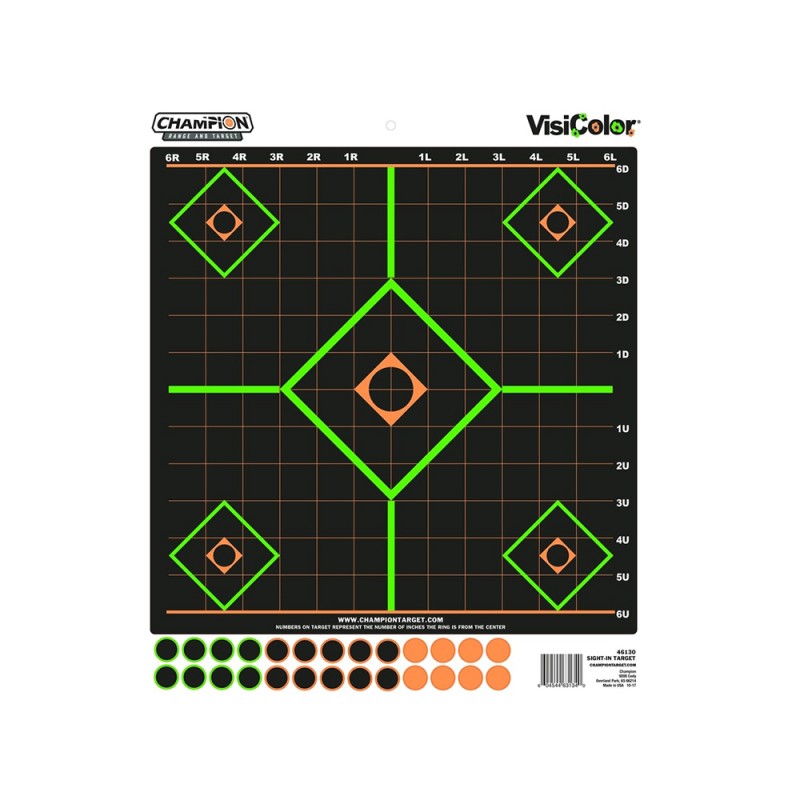 Peel-and-stick Champion VisiColor Adhesive targets create an instant shooting range. Multi-color impact halos help shooters track specific shot placement. Challenge friends with a wide variety of target options, like 50- and 100-yard sight-in targets, bullseyes and silhouettes