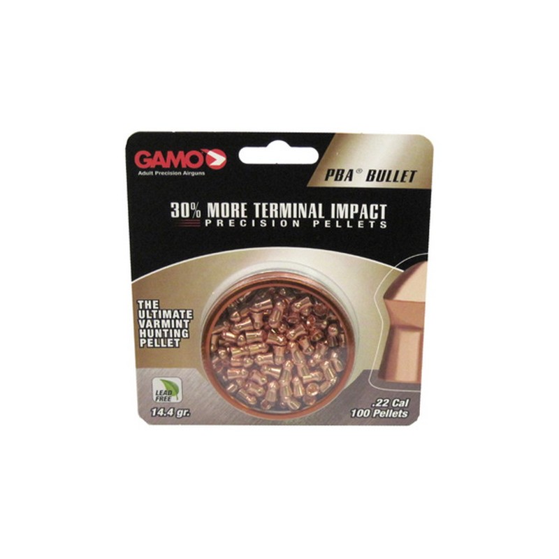 A precision non-lead hunting pellet with truer flight, longer skirt & greater penetration. Copper retains 100% of its weight after expansion, retaining velocity/energy creating less ballistic drag. The shape and long skirt create a flatter trajectory and tighter group patterns. Terminal impact for a clean, vital shot kill. The PBA Bullet produces 30% more terminal impact.