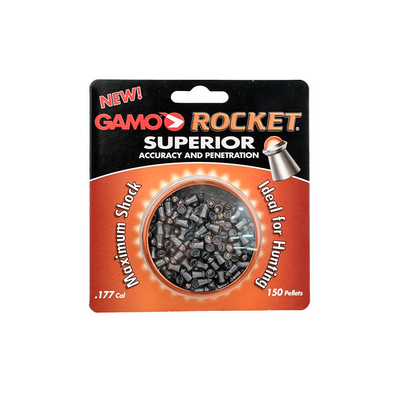 The Rocket Superior Accuracy and Penetration airgun ammunition combines performance lead with a hardened steel tip to yield enhanced penetration and shock with precision accuracy. The Rocket enhances down-range performance without any sacrifice of accuracy and consistency. Consistency, uniformity and performance are what makes Gamo ammunition superior to all others.