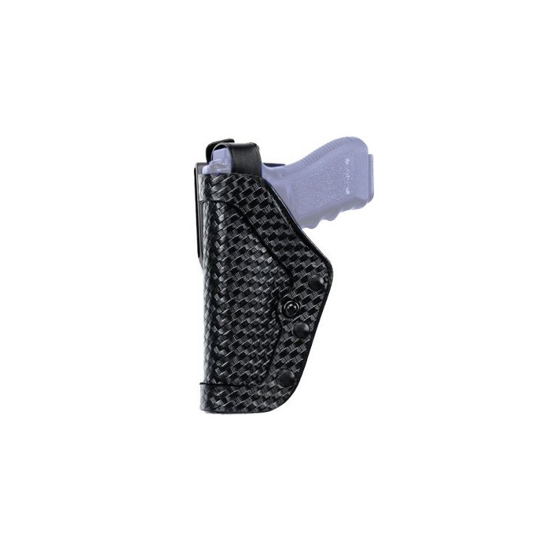 Our Pro-2 Dual-Retention holster allows you to draw your weapon with a quick, simple drawstroke. Until then, the firearm is held fast by a non-stretch retention strap (thumb break) and an outboard tensioning device. Plus, an internal detent engages the trigger guard.