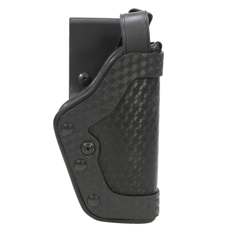 Our Pro-2 Dual-Retention holster allows you to draw your weapon with a quick, simple drawstroke. Until then, the firearm is held fast by a non-stretch retention strap (thumb break) and an outboard tensioning device. Plus, an internal detent engages the trigger guard.