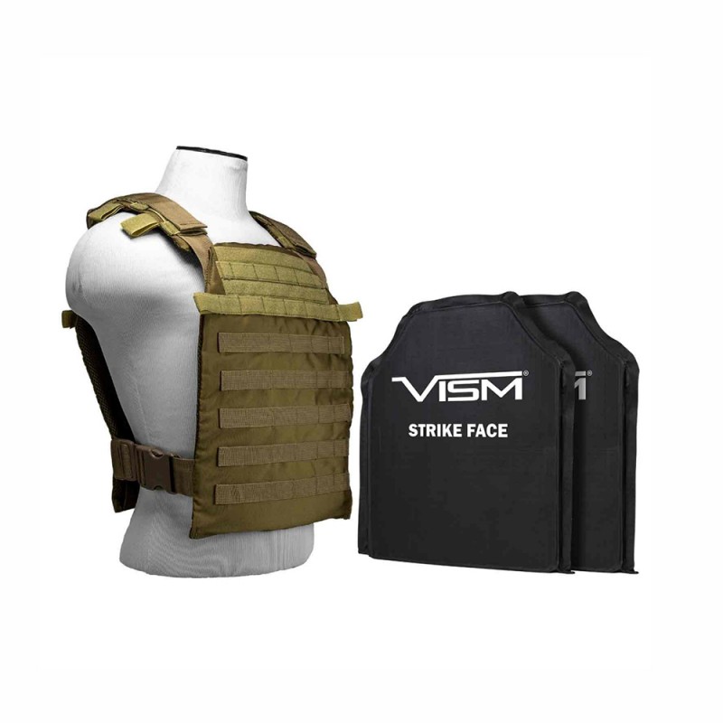 NcStar Fast Plate Carrier with 11" x 14" Level IIIA Shooter's Cut 2X Soft Ballistic Panels, Tan