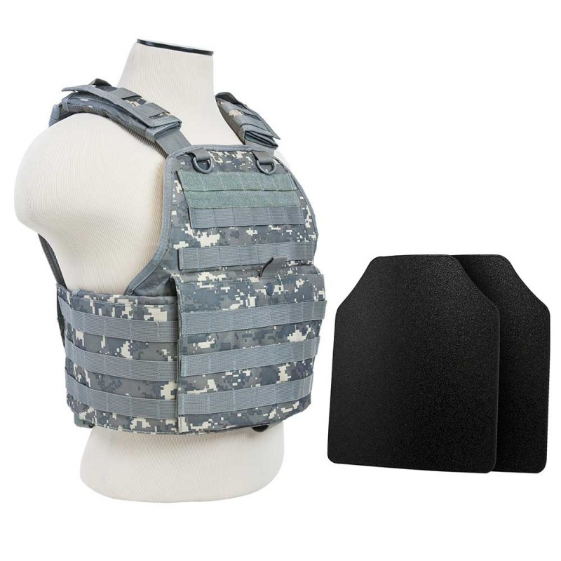 NcStar Plate Carrier Vest with 10" x 12' Level IIIA Shooters Cut 2x Hard Ballistic Panels