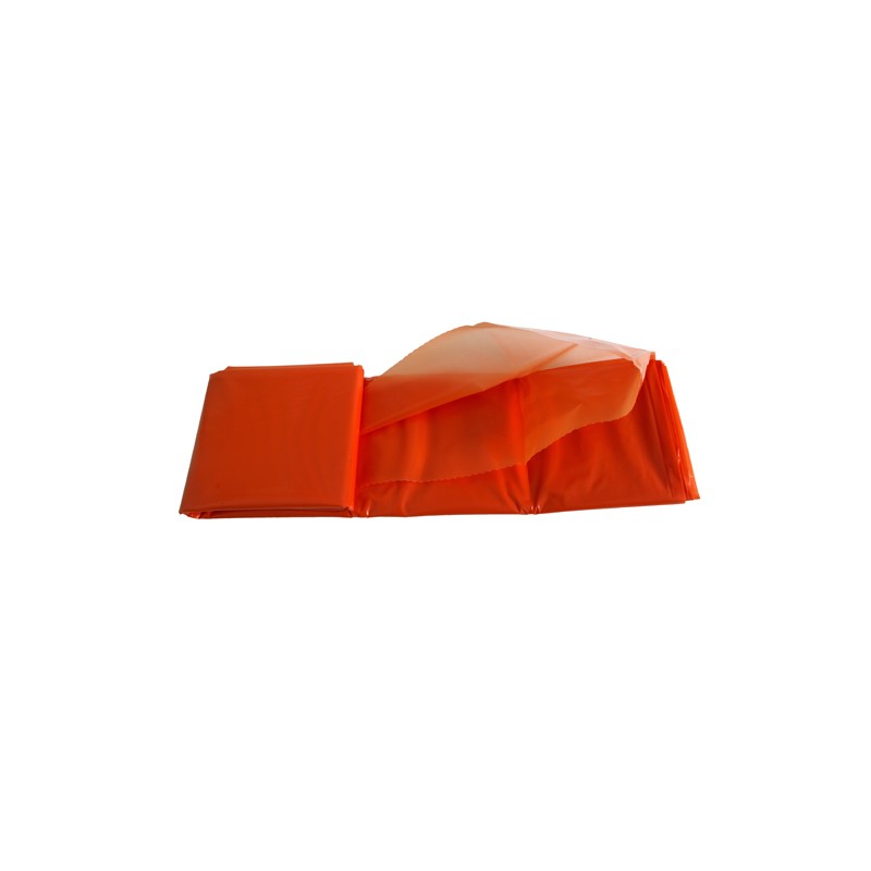 Emergency shelter doubles as a ground sheet. Can be used as a distress signal or for storing gear. Also helps prevent hypothermia. Made from 3-mil polyethylene.