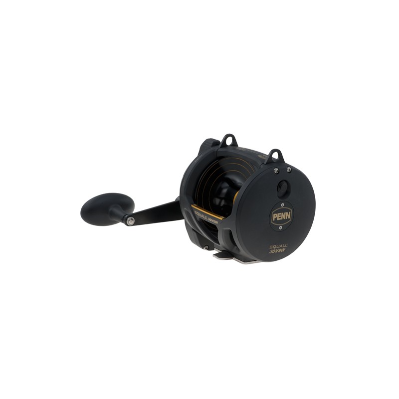 Penn Squall Lever Drag 2-Speed Reels offer great fish fighting features. In addition to the Quick-Shift 2-speed system, the Squall Lever Drag's graphite frame and side plates house tough, machined stainless steel main and pinion gears that are drilled out for weight reduction. Four shielded stainless steel ball bearings deliver smooth cranking power and the Dura Drag system eliminates hesitation and surging under extreme drag settings. The spool is made from forged and machined aluminum with the added touch of Line Capacity Rings to keep the angler in the know at a glance on how much line remains on the spool. The double-dog ratchet anti-reverse eliminates back-play in the handle and is twice as strong as a typical single dog system.
