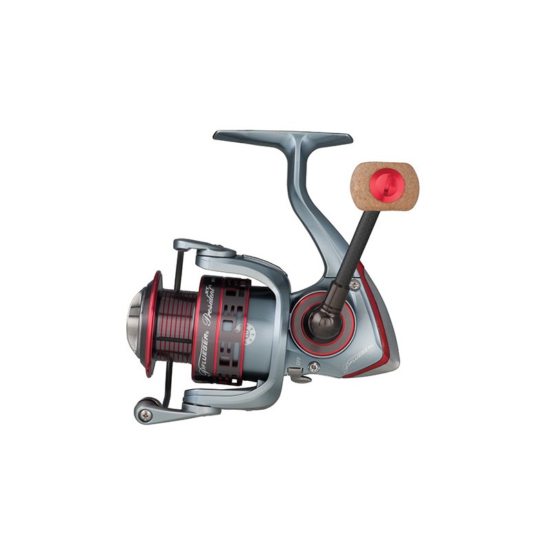 The President XT spinning reels take the President to the next level of performance. They are lighter and faster with a high-speed gear ratio. Featuring an aluminum main shaft, aluminum pinion gear, sealed drag, carbon fiber handle and a rubber cork knob.