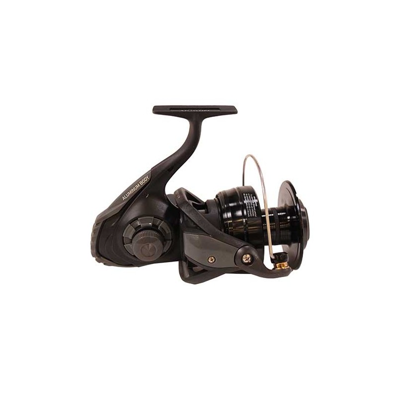 The Eliminator Series of Spinning Reels range from a compact 2500 series reel holding 6 lb. test to a beefy 8000 series reel that can pack on the 30 lb. test. The reels are also Well Suited For Braided Line Applications. The reel body is constructed utilizing the Hardbodyz Concept. The Aluminum Frame and Sideplate combine to form a strong ridgid housing for the state of the art Digigears cut to smooth, precise standards. The attractive yet durable Anodized Finish is scratch and corrosion resistant. The Air Rotor design is 15-percent lighter yet more precisely balanced than competing reels. The stout Aluminum Spool can carry the increased pressures of braided line and houses buttery smooth, long lasting Felt Drags. Slide-in handle for easy left or right hand crank conversion. Suitable for fresh and saltwater applications. If you are looking for a high quality line of workhorse-like reels at a smart price, then you owe yourself a look at the Eliminator Series Spinning Reels.