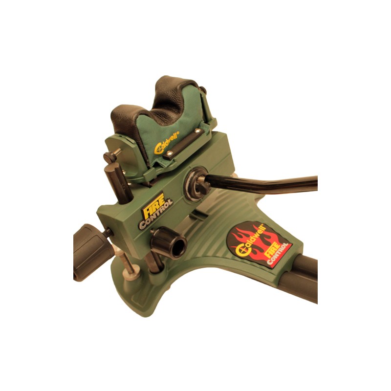Advanced shooters using today's modern, highly accurate rifles deserve accessories that deliver precision and control. Caldwell's Fire Control Front Rest delivers both precision design and manufacturing gives you perfect fingertip control over the location of your crosshairs when your trigger breaks. No more squeezing, tugging, or shifting a rear bag a simple nudge of the control arm and your crosshairs are perfectly adjusted for windage, mirage, or bag shifts. The glass-smooth internal mechanisms allow the front bag to move both up and down and left and right with a single motion to make fine, controllable adjustments to the position of your firearm while you're squeezing your trigger. The unique front cradle accepts specially designed bags. Two bags are included a traditional medium-width bag and a 3" lobe bag. The rest has three stainless steel adjusting feet, weighs 18 pounds and has an 28" x 9" base.