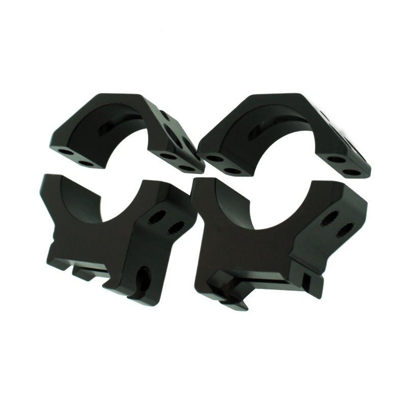 Weaver's popular Four Hole Rings are now available in heights for just about any shooter and shooting situation. Choose from among 1" or 30mm and medium, high, extra-high and XX-high. Dressed in matte black and featuring no strip/slip Torx screws, these new rings incorporate Weaver's famous Cross-Lock design and lightweight aircraft grade aluminum.