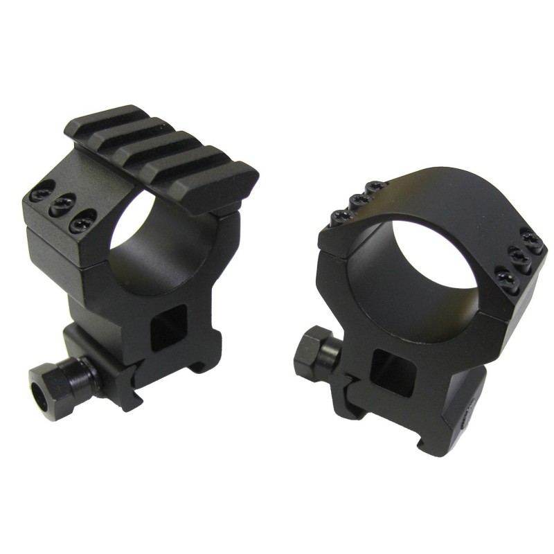 30mm High w/ 1" Insert, Tactical Rings w/built-in Picatinny Rail, See-through Picatinny Base, Includes 1 detachable rail top (rail length measures 1.75 inches), 1 standard top and 1" inserts.