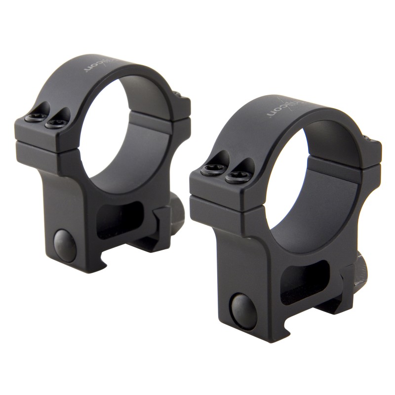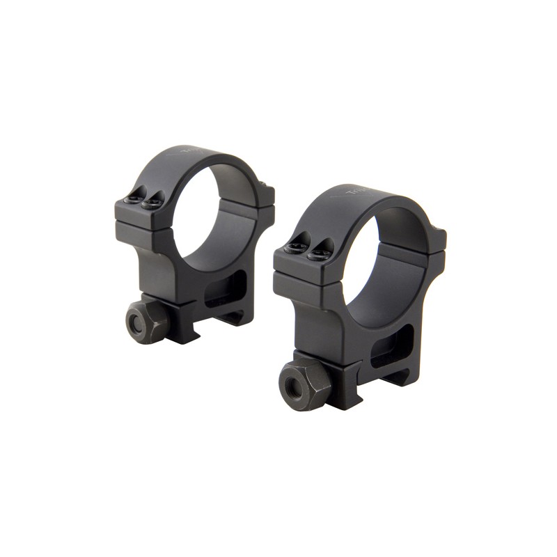 Aluminum rings with hard coated anodized aluminum uses four T25 torque screws and 1/2" clamp nuts. Designed to withstand heavy recoil and extreme service.
