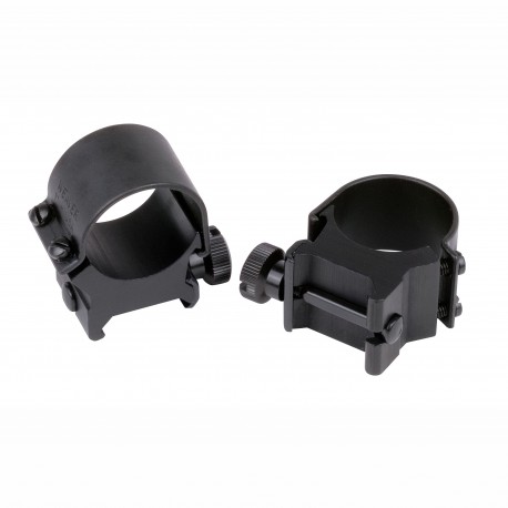 Weaver Top-Mount Rings offer wide top steel caps that hold zero under the most jarring recoil. Loosen the thumb nuts and you can go back to iron sights in seconds. Later you can put the rings back on the base, tighten the thumb nuts and the scope will be very close to zero.