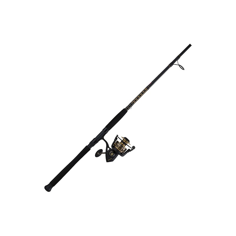 Penn's most popular spinning combo, the Penn Battle II features a Full Metal Body, side plate, and rotor for exceptional durability. The machined and anodized aluminum Superline Spool allows anglers to tie superlines directly to the spool without backing. The HT-100 drag system provides smooth drag under heavy loads. Matched with the graphite composite Battle rod with aluminum oxide guides, no fish stands a chance.
