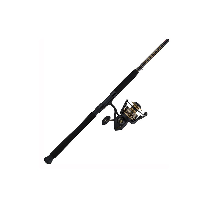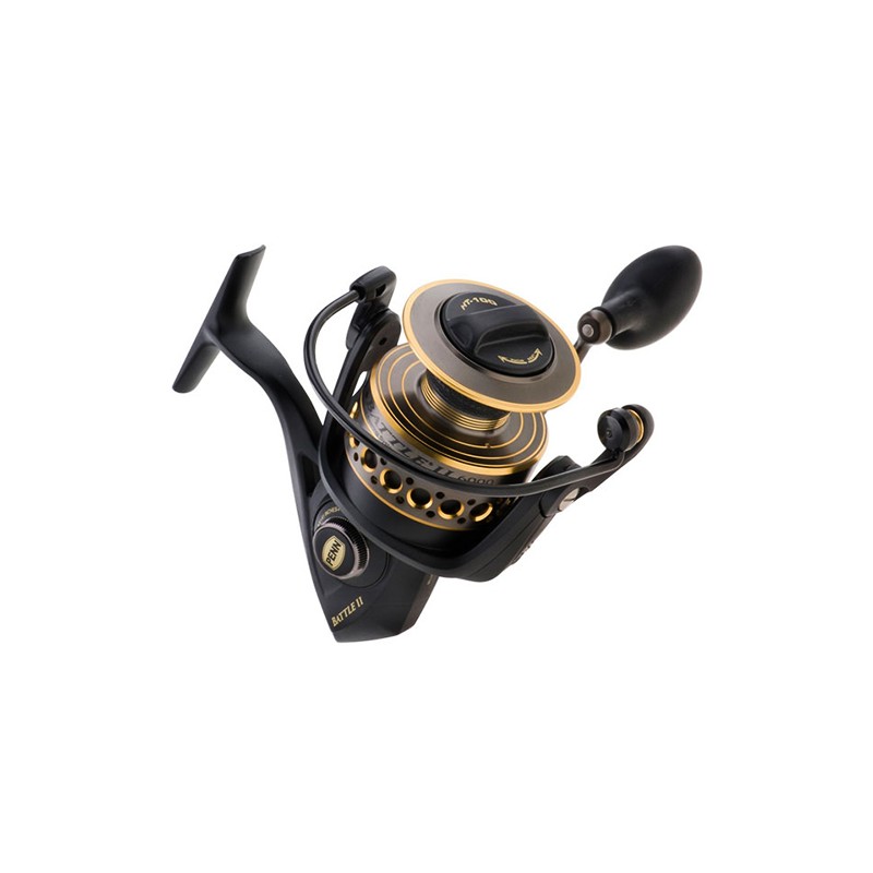 Penn's most popular spinning combo, the Penn Battle II features a Full Metal Body, side plate, and rotor for exceptional durability. The machined and anodized aluminum Superline Spool allows anglers to tie superlines directly to the spool without backing. The HT-100 drag system provides smooth drag under heavy loads. Matched with the graphite composite Battle rod with aluminum oxide guides, no fish stands a chance.