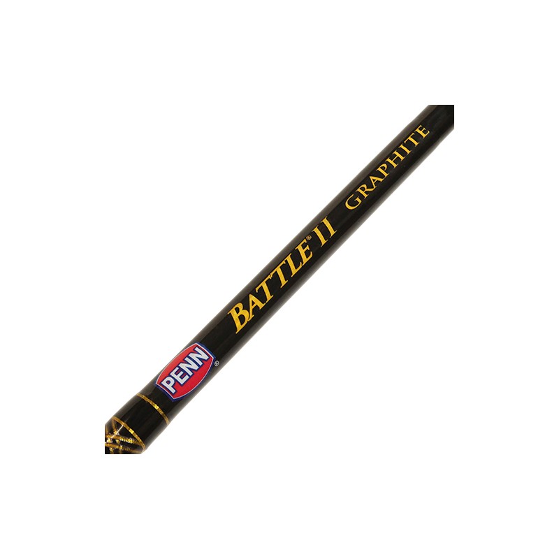 Penn's most popular spinning combo, the Penn Battle II features a Full Metal Body, side plate, and rotor for exceptional durability. The machined and anodized aluminum Superline Spool allows anglers to tie superlines directly to the spool without backing. The HT-100 drag system provides smooth drag under heavy loads. Matched with the graphite composite Battle rod with aluminum oxide guides, no fish stands a chance.