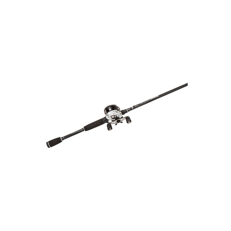 The latest generation of the Silver Max baitcast fishing combos incorporates updated styling with advanced ergonomics. Notable advancements in the baitcast reel include a new Rocket clutch mechanism that gives anglers the ability to engage/disengage the spool with one hand. This feature eliminates the need for anglers to turn the handle for engagement and is perfect for pitching, flipping or back trolling techniques. A graphite frame and body, along with the compact bent handle and drag star, provide a more ergonomic feel for all-day fishing sessions. The fishing combos feature a 24 Ton graphite rod that utilize stainless steel guides with Titanium oxide inserts.