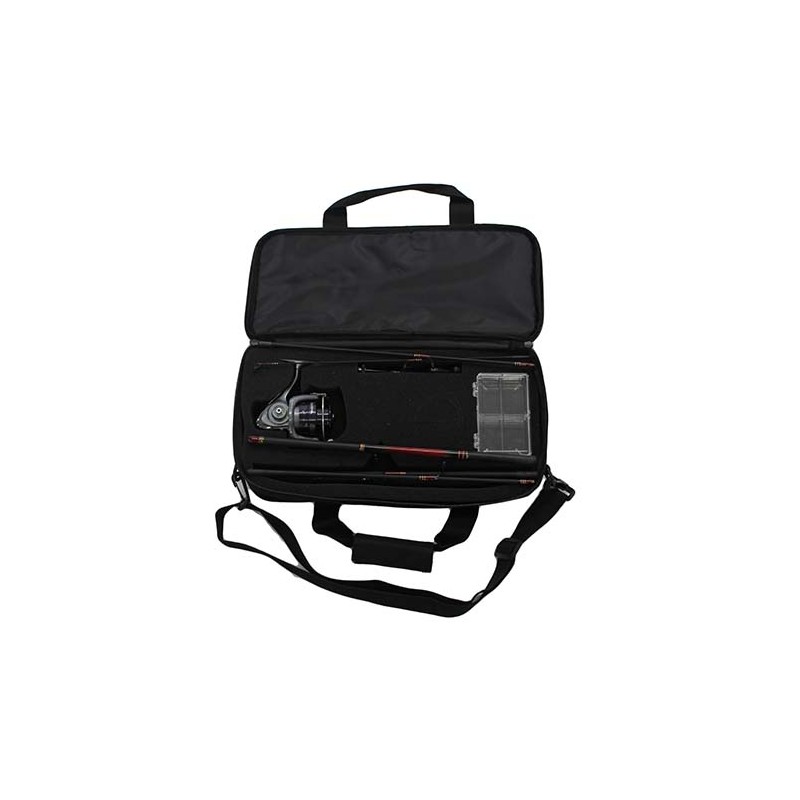 These full-sized quality outfits are ready to go anywhere, anytime in briefcase-styled hard case. Removable, miniature tackle box gives convenient storage for lures, swivels, hooks etc. Executive Travel Packs are available with various combinations of Spinning (top), Spin/Fly (bottom) and Baitcasting (not shown).