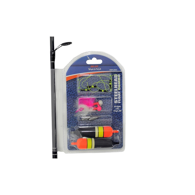 Wright & McGill by Eagle Claw Steelhead Float Combo with Kit has a 9'6" medium action two piece spinning rod. The spinning reel will handle 6 - 10 lb. line. This kit includes soft floats weights, bobber stops and jigs so you can put some line on the reel and head to the river.