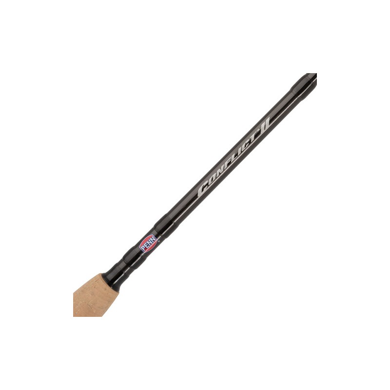 The PENN Conflict II combos feature stealthy cosmetics, a Freaky Light design (the lightest spinning reel/rod combo ever), and silky smooth HT-100 drag. The RR30 Rigid Resin body and rotor are extremely lightweight and durable. Internally the Conflict II is powered with the CNC Gear Technology, and high quality stainless steel ball bearings. The rod is made using the 24ton graphite, and features Fuji Aluminum Oxide guides and top grade cork handles.