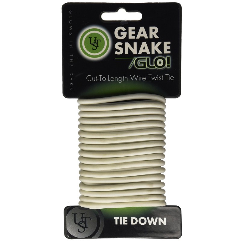 USTs Gear Snake bendable steel wire cord with flexible foam rubber coating easily attaches gear or equipment together without knots to tie or hooks to slip. Ideal for tie downs, the strong, durable twist-tie material can be cut to length as needed with scissors or a knife. Perfect for camping, backpacking, hunting, and more, the Gear Snake cord wont rust, slip, or stretch. It has a 16.5-foot length.