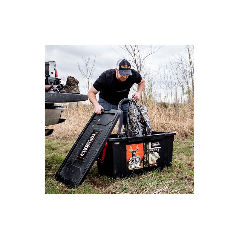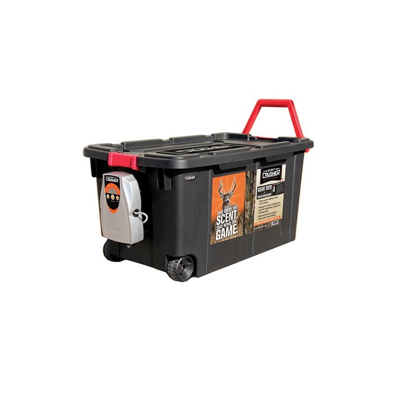 Store everything in this easy stow and go unit. Toss this rigid container in the back of the truck with no worries about the weather or wear and tear. All your hunting items will be fresh and ready for your next hunting excursion when you arrive. The Scent Crusher is a heavy duty 40 gal. container that can be used for permanent storage or for traveling. Constructed from polypropylene and polyethylene that is even safe for food storage!
