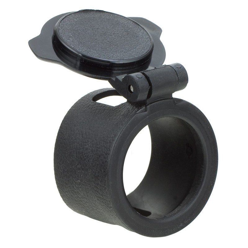 This matte black, non see through cover provides a snap-lock lid that prevents dust build up and blocks rain and snow accumulation when closed. When open the lid pivots 270° to lay parallel to the scope so it doesn't block the shooters view.