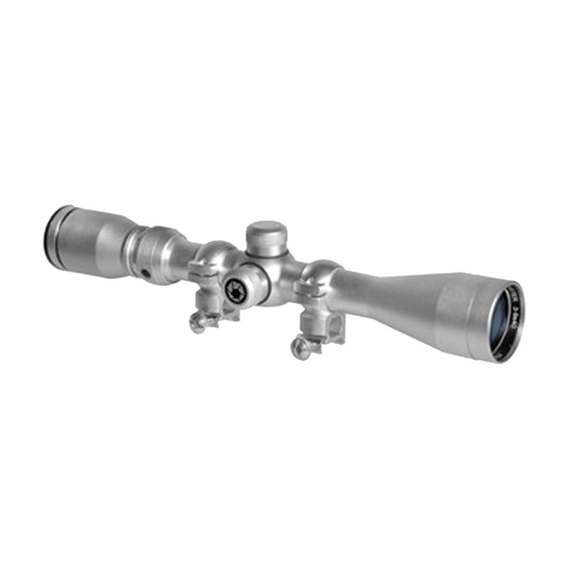 3-9x40 Huntmaster, Silver, 30/30, 5/8" Rings, 1" Tube, Waterproof, Fog proof and Shockproof. Fully Coated optics, Parallax-Free at 100 yards, 1/4 MOA Fingertip adjustments and Scope Caps Included. Perfect choice for serious shooters or hunters who want a wealth of features and performance but don't want to spend a fortune.