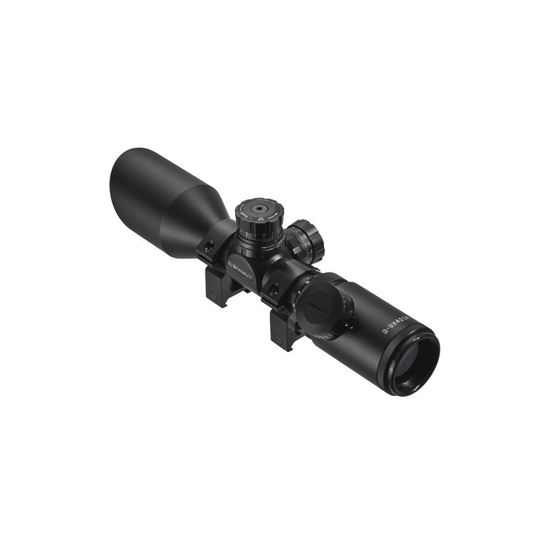 3-9x42 IR 2nd Generation Sniper Scope by Barska, 100% waterproof and fogproof, Extra rigid shockproof construction, Multi-Coated optics, Illuminated red and green mil-dot reticles, 1 inch tube construction, lockable easy-grip target-style windage and elevation adjustments, 1/4 MOA click adjustment, Built-in sniper edged sun-shade is set back in the housing to allow the sun shade to cast a shadow and reduce glare for use in bright sun, Precise and easy-to-use for tactical environments, Fast focus eyebell, Includes protective scope caps and set of rings, Limited Lifetime Warranty.