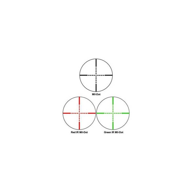 Built-in sniper edged sun-shade, Red and Green IR Mil dot reticle, 3.3" Eye relief, Fully coated optics, Compact in size only 9" long, 4x magnification makes this scope adaptable to a wide variety of shooting activities. Includes a set of picatinny/weaver style rings