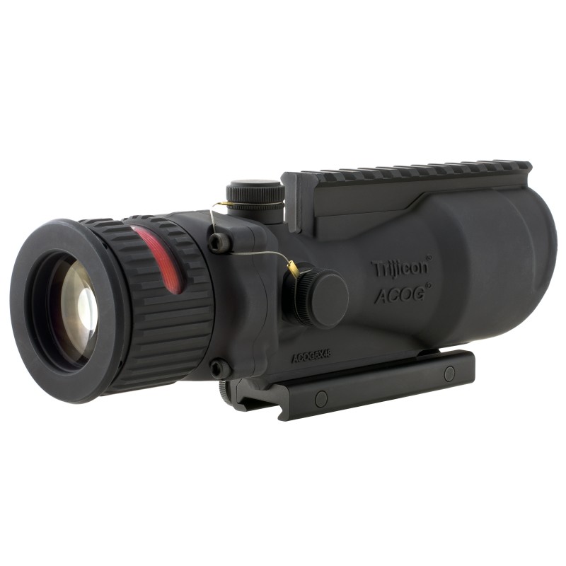 The military's need for a magnified, self-luminous tactical sight that enhances target identification and increases hit probability on extended-range shots has given rise to the Trijicon ACOG 6x48. Powered by Trijicon's patented fiber optics and tritium-based technology, the TA648-50 ACOG reticle features a red chevron aiming point. It also incorporates a bullet drop compensator (BDC) with additional aiming points estimated for trajectory of the .50BMG round out to 1800 meters. To further improve target acquisition and hit potential, the ACOG 6x48 incorporates Trijicon's Bindon Aiming Concept (BAC)- a revolutionary both-eyes-open method of aiming. Like other members of the Trijicon ACOG line, the ACOG 6x48 is battery free and waterproof to 500 feet.