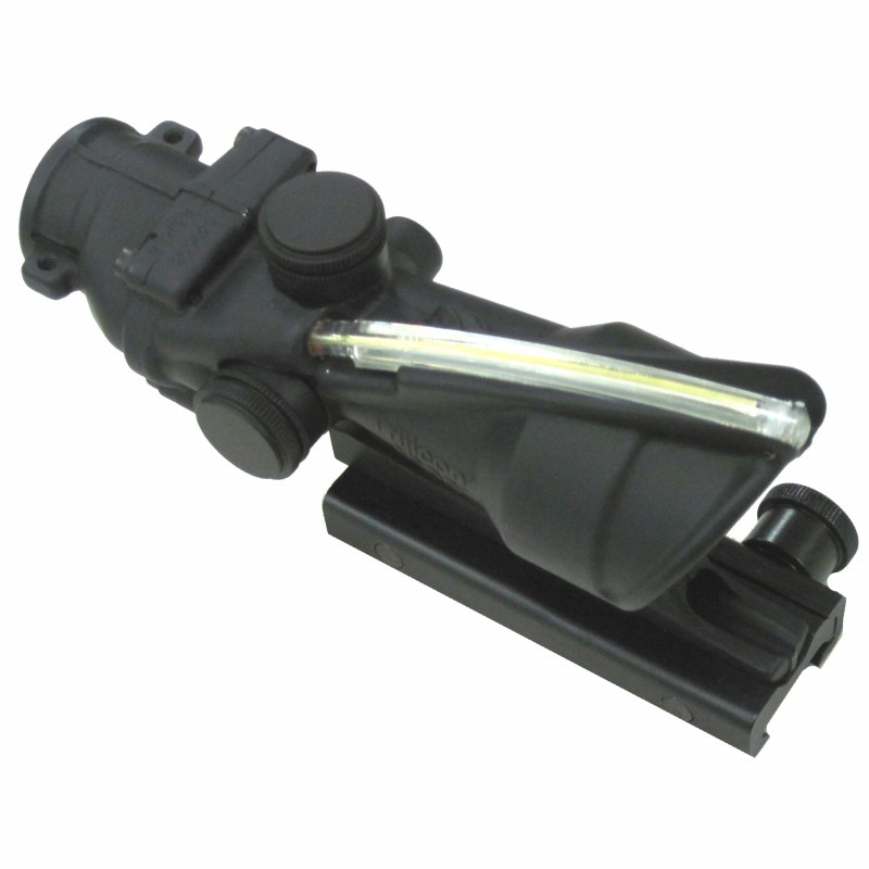 ACOG 4x32 Scope with Amber Horseshoe BAC Reticle-includes Flattop Adapter. Features dual illumination (Fiber optics provides daylight illumination and tritium illuminates reticle at night). The ranging reticle is calibrated for 6.8 SPC flattop rifles out to 800 meters.