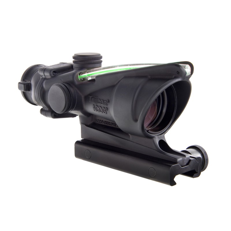 ACOG 4x32 Scope with Green Horseshoe BAC Reticle-includes Flattop Adapter. Features dual illumination (Fiber optics provides daylight illumination and tritium illuminates reticle at night). The ranging reticle is calibrated for 6.8 SPC flattop rifles out to 800 meters.