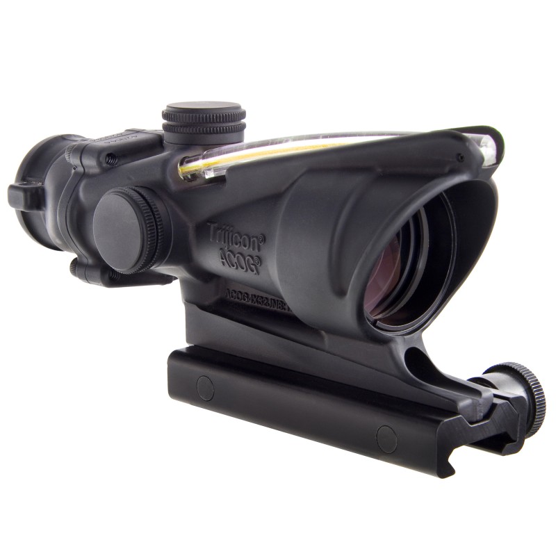 ACOG 4x32 Scope with Amber Horseshoe BAC Reticle-includes Flattop Adapter. Features dual illumination (Fiber optics provides daylight illumination and tritium illuminates reticle at night). The ranging reticle is calibrated for 5.56 (.223 cal.) flattop rifles out to 800 meters.