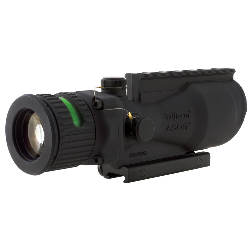 The military's need for a magnified, self-luminous tactical sight that enhances target identification and increases hit probability on extended-range shots has given rise to the Trijicon ACOG 6x48. Powered by Trijicon's patented fiber optics and tritium-based technology, the TA648-50G ACOG reticle features a green chevron aiming point. It also incorporates a bullet drop compensator (BDC) with additional aiming points estimated for trajectory of the .50 BMG out to 800 meters. To further improve target acquisition and hit potential, the ACOG 6x48 incorporates Trijicon's Bindon Aiming Concept (BAC) a revolutionary both-eyes-open method of aiming. Like other members of the Trijicon ACOG line, the ACOG 6x48 is battery free and waterproof to 500 feet.