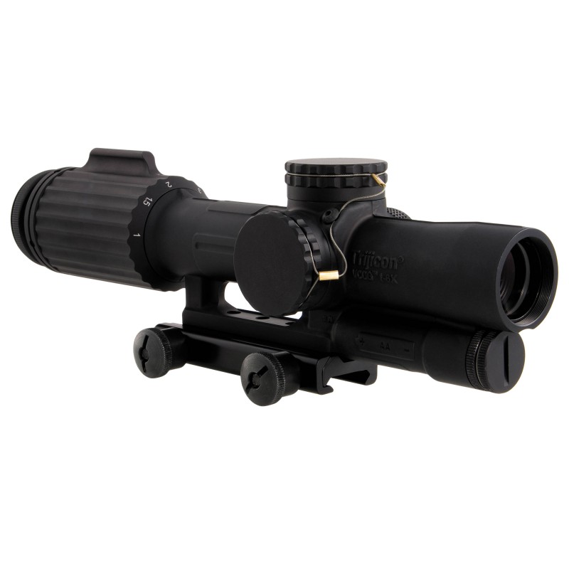 The Trijicon VCOG (Variable Combat Optical Gunsight) is a rugged variable powered riflescope that accommodates close quarter battle (CQB) and long distance marksmanship. It features superior glass quality and light gathering capabilities with zero distortion. The bullet drop compensating and ranging reticles allow for the shooter to quickly and accurately estimate range and apply the correct hold. The first focal plane reticle allows the subtensions and drops to remain true at any magnification. With a forged 7075-T6 aircraft-aluminum-alloy housing, the VCOG is an exceptionally durable and nearly indestructible sighting system. Robust enough for any application, the VCOG utilizes a single AA battery, commonly found across the globe and offers 6 adjustable brightness settings for the LED reticle. When powered by a lithium AA battery (like the one provided), it boasts a considerable battery life of 700 hours at setting 4 (constant on). An integrated dial fin allows easy rotation through the magnification range and a constant eye relief means no head or stock position adjustments are needed. Waterproof to 20 meters (66 feet).