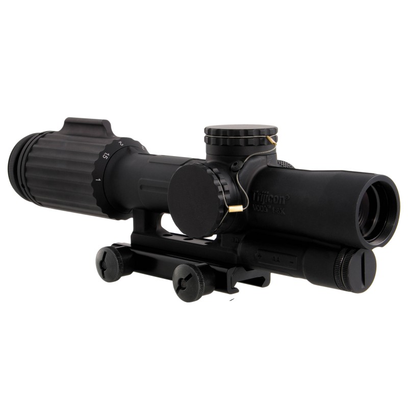 The Trijicon VCOG (Variable Combat Optical Gunsight) is a rugged variable powered riflescope that accommodates close quarter battle (CQB) and long distance marksmanship. It features superior glass quality and light gathering capabilities with zero distortion. The bullet drop compensating and ranging reticles allow for the shooter to quickly and accurately estimate range and apply the correct hold. The first focal plane reticle allows the subtensions and drops to remain true at any magnification. With a forged 7075-T6 aircraft-aluminum-alloy housing, the VCOG is an exceptionally durable and nearly indestructible sighting system. Robust enough for any application, the VCOG utilizes a single AA battery, commonly found across the globe and offers 6 adjustable brightness settings for the LED reticle. When powered by a lithium AA battery (like the one provided), it boasts a considerable battery life of 700 hours at setting 4 (constant on). An integrated dial fin allows easy rotation through the magnification range and a constant eye relief means no head or stock position adjustments are needed. Waterproof to 20 meters (66 feet).