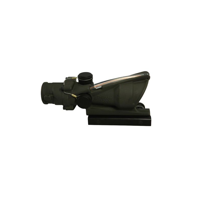 The chevron reticle is designed to be zeroed using the tip at 100 meters. The width of the chevron at the base is 5.53 MOA which is 19 in. at 300 meters. This allows range estimation for silhouette targets. Features dual illumination (Fiber optics provides daylight illumination and tritium illuminates reticle at night). The ranging reticle is calibrated for 5.56 (.223 cal.) flattop rifles out to 800 meters.