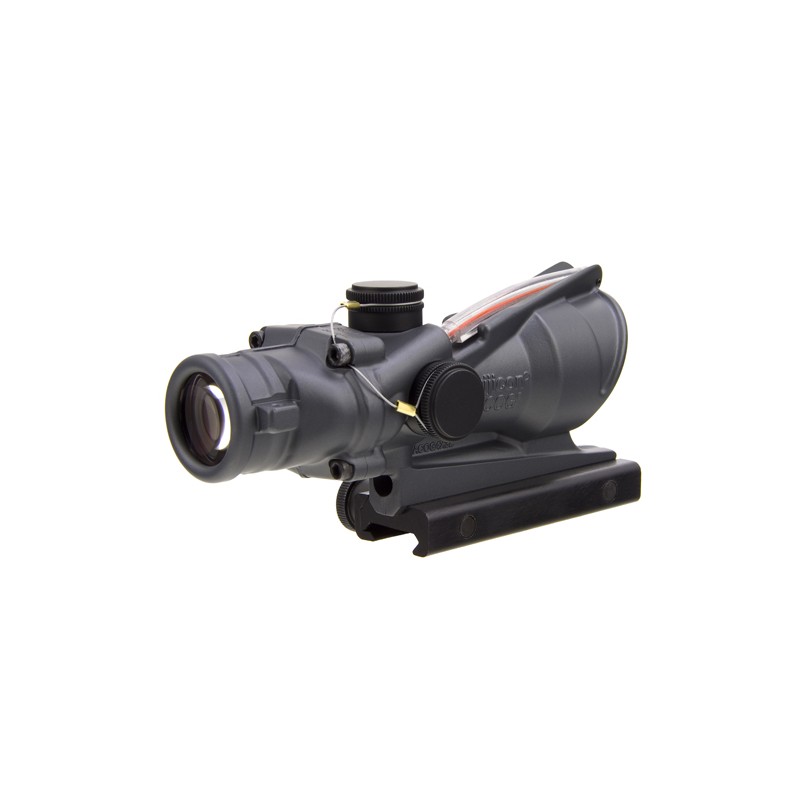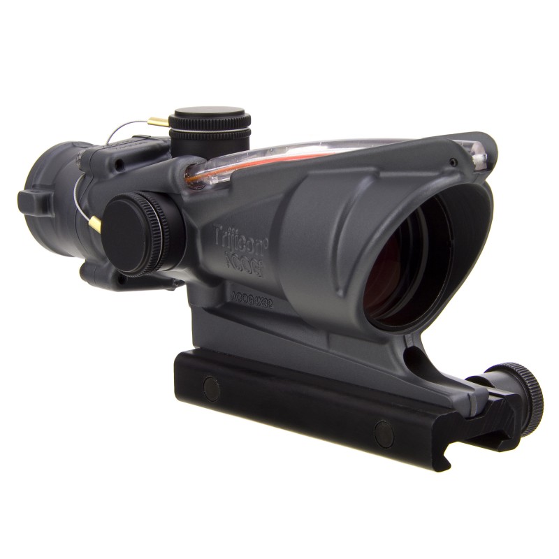 Trijicon 4x32 ACOG scope provides a dual-illuminated reticle using fiber optics and tritium for a bright aiming point in any light condition. The ranging reticle allows for bullet drop compensation out to 600 meters without any manual adjustments.