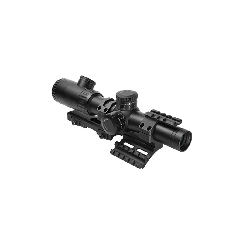 30mm 1-4x scope with glass etched reticle for finer sight picture and target acquisition.