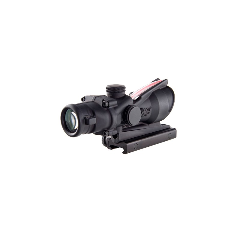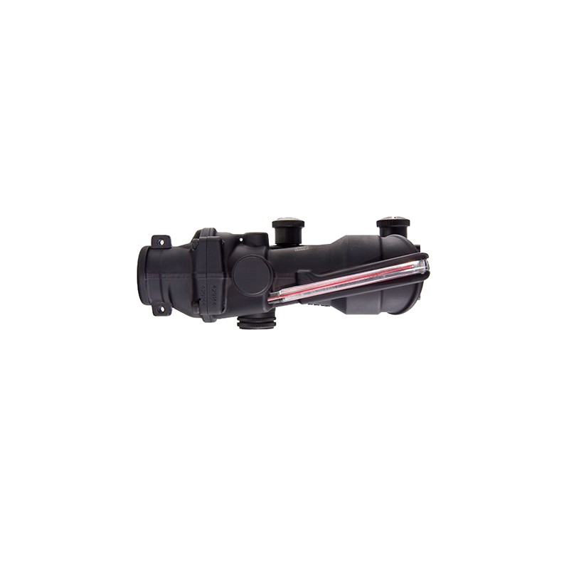 This 4x32 BAC ACOG scope provides a dual-illuminated reticle using fiber optics and tritium for a bright aiming point in any light condition. The ranging reticle is calibrated for M193 ammunition (5.56, 55 gr. FMJ, common military surplus) fired from a 16" barrel.