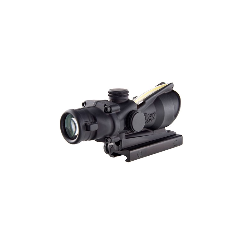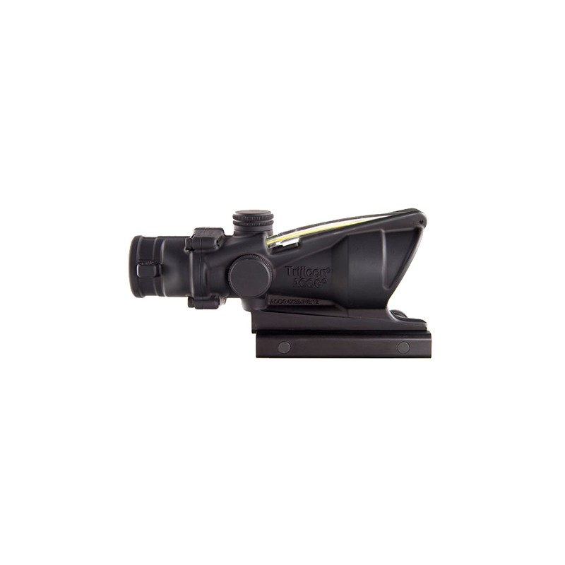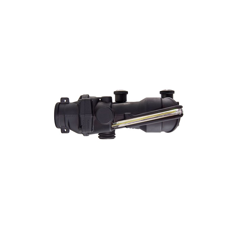 This 4x32 BAC ACOG scope provides a dual-illuminated reticle using fiber optics and tritium for a bright aiming point in any light condition. The ranging reticle is calibrated for M193 ammunition (5.56, 55 gr. FMJ, common military surplus) fired from a 16" barrel.