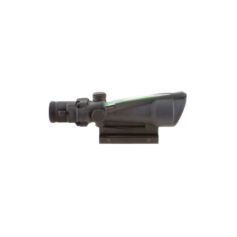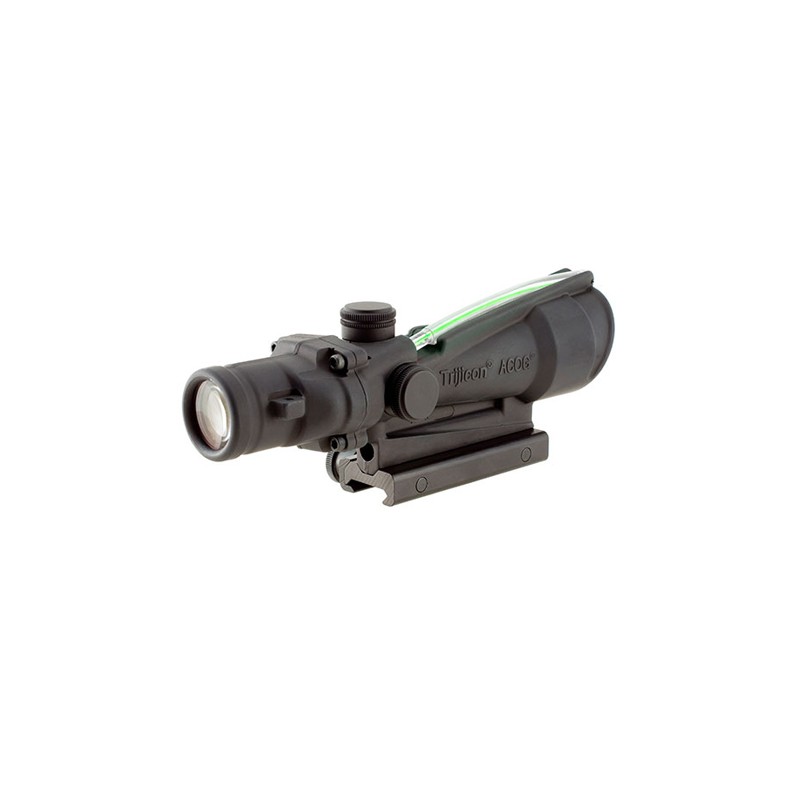 This 3.5x35 ACOG scope provides a dual-illuminated reticle using fiber optics and tritium for a bright aiming point in any light condition. The ranging reticle is calibrated for M193 ammunition (5.56, 55 gr. FMJ, common military surplus) fired from a 16" barrel.