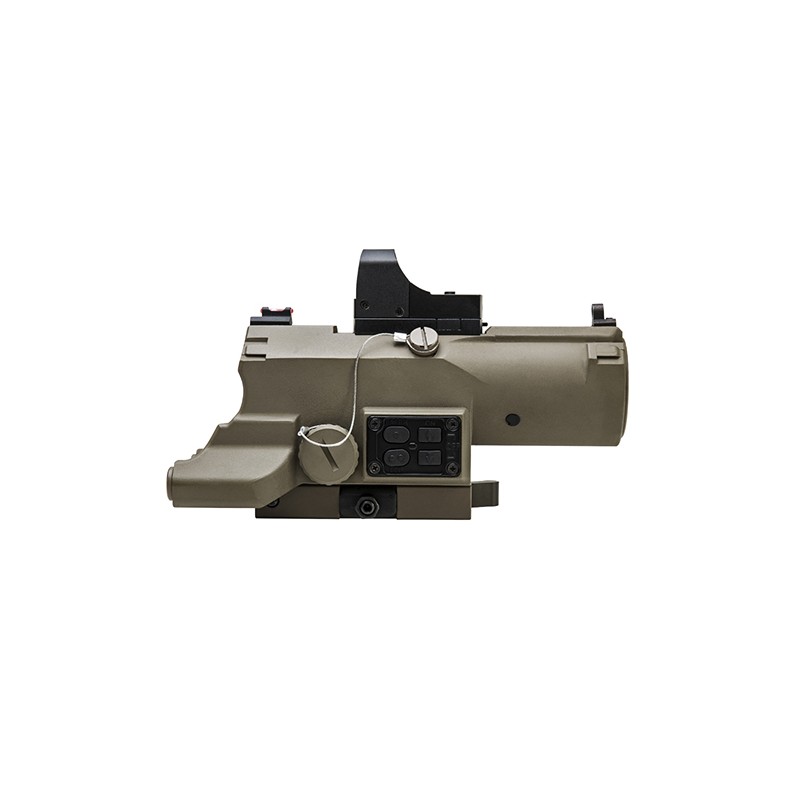 - Electronic control panel for blue reticle illumination levels, green laser on/off and nav LED light: on/off and color LED light selection (red/ white)