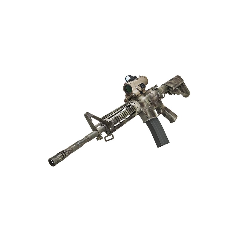 - 4x magnification 34mm scope with two forward mounted green laser pod and red/white LED navigation light pod