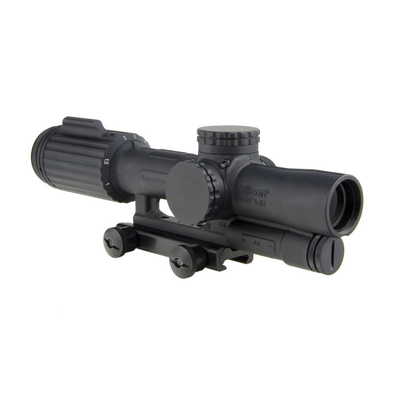The Trijicon VCOG (Variable Combat Optical Gunsight) is a rugged variable powered riflescope that accommodates close quarter battle (CQB) and long distance marksmanship. It features superior glass quality and light gathering capabilities with zero distortion. The bullet drop compensating and ranging reticles allow for the shooter to quickly and accurately estimate range and apply the correct hold. The first focal plane reticle allows the subtensions and drops to remain true at any magnification. With a forged 7075-T6 aircraft-aluminum-alloy housing, the VCOG is an exceptionally durable and nearly indestructible sighting system. Robust enough for any application, the VCOG utilizes a single AA battery, commonly found across the globe and offers 6 adjustable brightness settings for the LED reticle. When powered by a lithium AA battery (like the one provided), it boasts a considerable battery life of 1400 hours at setting 4 (constant on). An integrated dial fin allows easy rotation through the magnification range and a constant eye relief means no head or stock position adjustments are needed. Waterproof to 20 meters (66 feet).