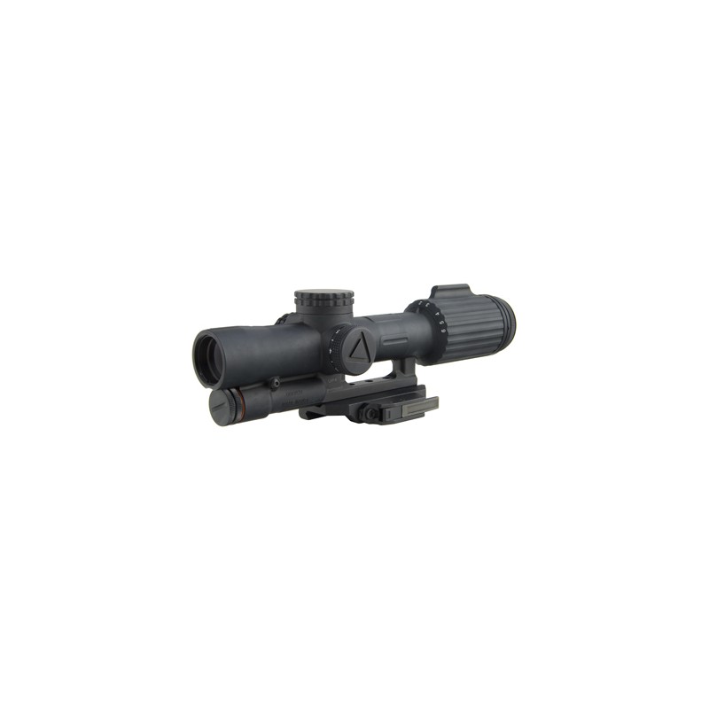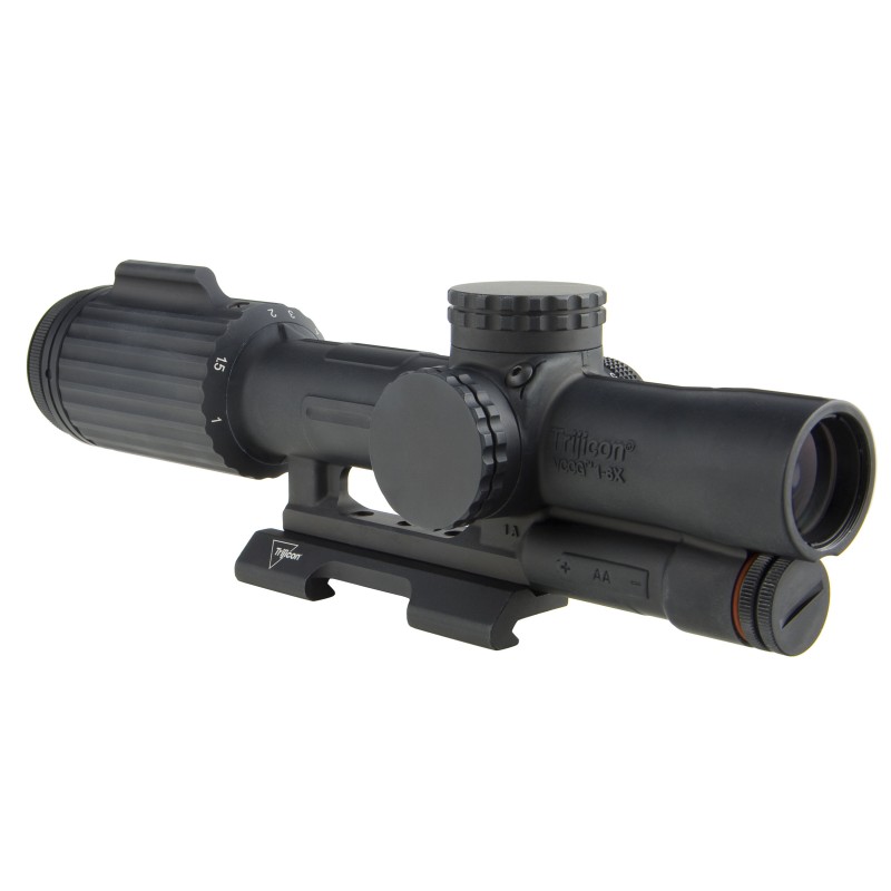 The Trijicon VCOG (Variable Combat Optical Gunsight) is a rugged variable powered riflescope that accommodates close quarter battle (CQB) and long distance marksmanship. It features superior glass quality and light gathering capabilities with zero distortion. The bullet drop compensating and ranging reticles allow for the shooter to quickly and accurately estimate range and apply the correct hold. The first focal plane reticle allows the subtensions and drops to remain true at any magnification. With a forged 7075-T6 aircraft-aluminum-alloy housing, the VCOG is an exceptionally durable and nearly indestructible sighting system. Robust enough for any application, the VCOG utilizes a single AA battery, commonly found across the globe and offers 6 adjustable brightness settings for the LED reticle. When powered by a lithium AA battery (like the one provided), it boasts a considerable battery life of 1400 hours at setting 4 (constant on). An integrated dial fin allows easy rotation through the magnification range and a constant eye relief means no head or stock position adjustments are needed. Waterproof to 20 meters (66 feet).
